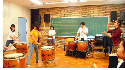 練習会場は墨田中学校第二音楽室、練習日は月2回、月謝・会費は無しという地域の粋なお父さんたちがサポート隊を作り、太鼓の指導、搬入・搬出はもちろん雑事の全てをこなす地域密着型。細かいキマリは作らない、アバウトだけれどもまとまりのある下町向島の粋を地で行く、とっても楽しい会で盆踊りには「あさま太鼓」のブースも出店、お父さん、お母さんも一緒に参加の一大イベントで団結振りを披露。