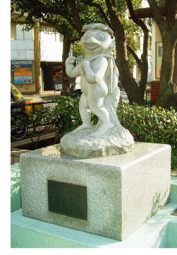 カッパの像は平成7年10月にカッパ連邦共和国おいてけ堀カッパ村の有志と趣旨に賛同する地域の商店や企業の募金により、地域の活性化と観光の為に作成して墨田区に寄贈、河童伝説ゆかりの錦糸堀公園に設置されました。その愛らしい姿は地域の方々に喜ばれています。