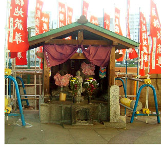 このたんぽぽ公園で町会の盆踊りやお祭り広場として利用していましたが、交通量が増え、ご高齢の方や子ども達が広い通りを渡る事の危険と、高速道路下なので雨露を凌ぐ人の住まいが幾つか有り数年前から使用をしていませんが、翻る赤い幟と常にお花が活けられ、ホッと和む地域の大切な場所としての存在はとても大きく戦没者の慰霊の為にお詣りする方が絶えません。