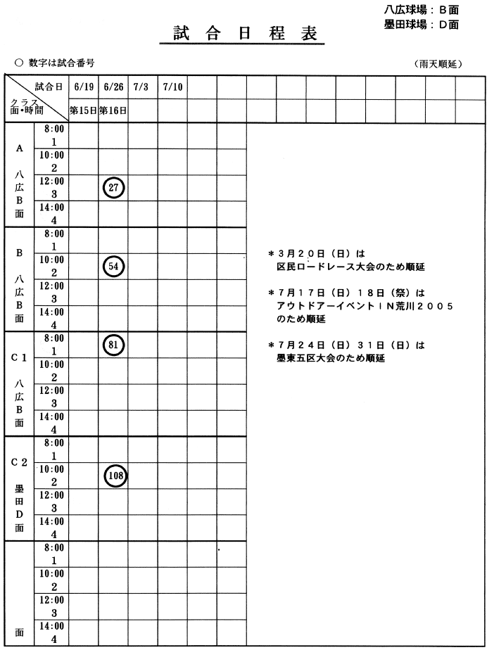 試合日程表