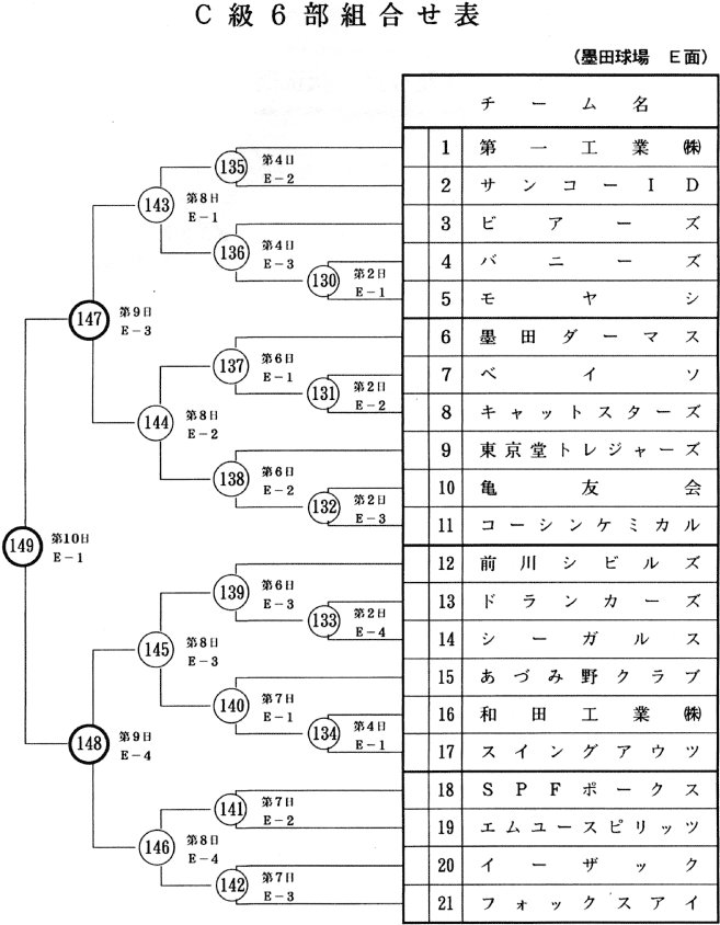 前川シルビス/サンコーID/ヤンケース/バックラビッツ/八広ダイヤモンド/和田工業(株)/押上ストライクス/玉ノ井ダリーズ/ビービーピー/日本カラープロセス/ベイソ/第一工業(株)/ハンティングス/楽天地/エムユースビリッツ/ドランカーズ/向島ワールズ/山下工業/イーザック/ティフォーケイ/悟空/スイングアウツ/ウオーズマン/あずみ野クラブ/クローズ/ロッズ/ビアーズ